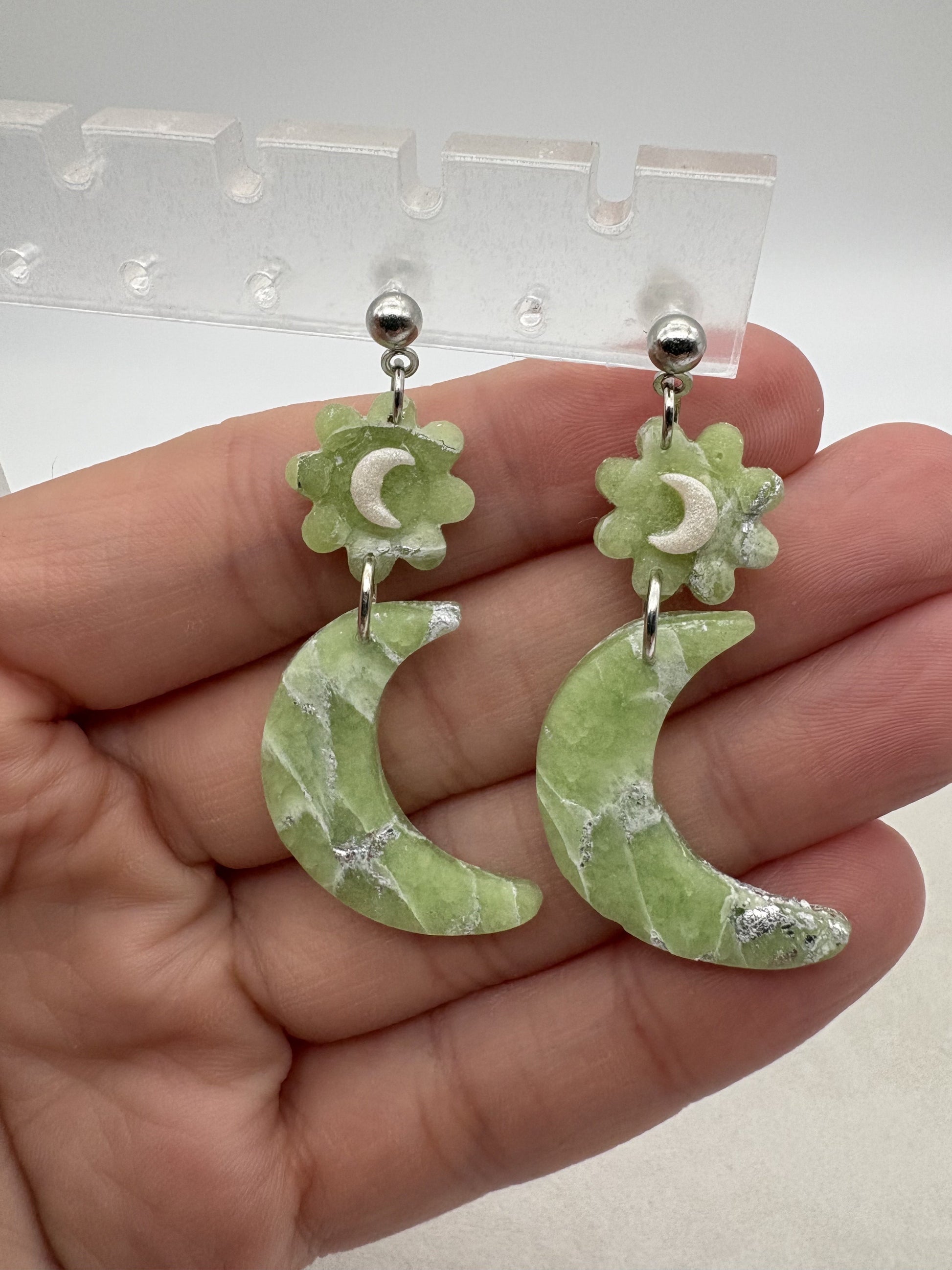 Bring a pop of fun to your style with these Lime Green Marbled Crescent Moon Earrings! Their bright, swirling green hues add a playful twist to any outfit. Vibrant and bold, they’re perfect for those who love to shine with a touch of cosmic charm.