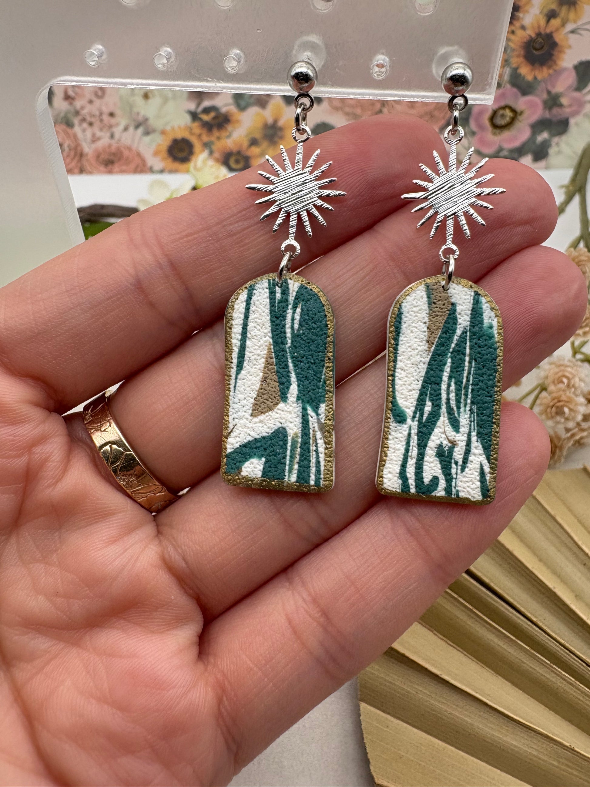 Teal Marble Arch Earrings with Silver Starburst Charm